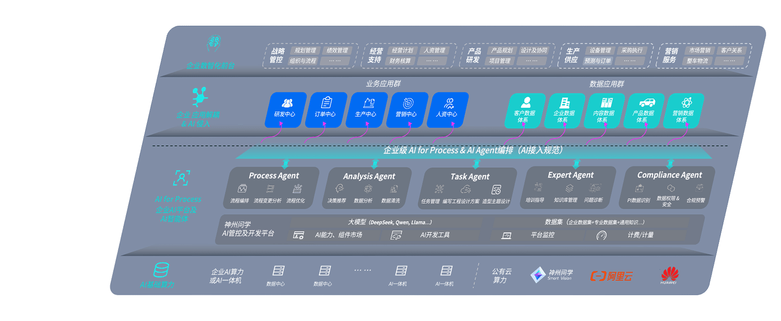 太阳成集团122ccvip问学智车解决方案是一套基于AI技术的汽车行业智能化系统,,覆盖从底层算力到顶层AI应用的全栈方案。。。方案由算力层、、、、模型层和应用层组成:算力层,,方案支持多种一体机配置,,,具备云端灵活部署、、、、多云适配以及动态优化计算资源的能力;模型层,,,,太阳成集团122ccvip问学平台版提供了企业级AI应用一站式构建与管理平台,,支持基于后训练强化技术的汽车企业专属模型的训练、、评测和运营;应用层,,,,太阳成集团122ccvip问学DeepSeek版提供包括超级员工、、、智能招采、、、智能营销、、、智能客服、、、AI for BI等一系列解决方案,,,,可助力汽车行业实现数字化转型,,让管理更智能、、、、响应更敏捷。。。
